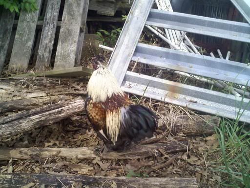 one of my pretty roosters.. hes a Silkie X OEG mix