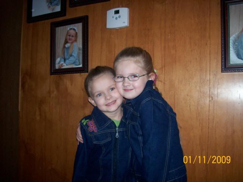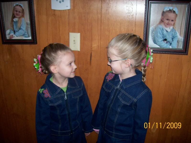 and.........finally a couple new ones of the girls..........I HEART their new "jean skirt suits" I got them!!!