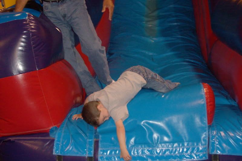 My brother on the slide...this was right before the announcement telling him that only ONE at a time can slide. LOL